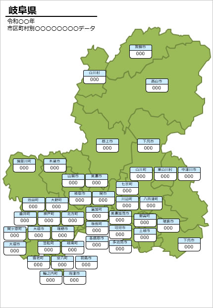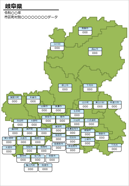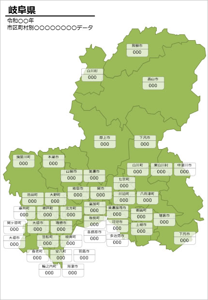 岐阜県の市町村別の数値入力データマップ(パワーポイント/エクセル)|地域データの視覚化に