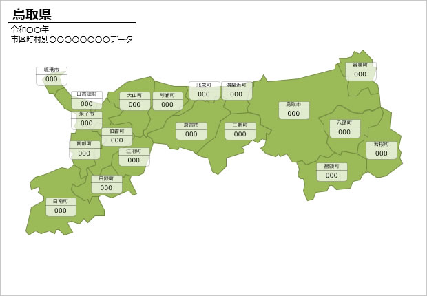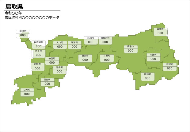鳥取県の市町村別の数値入力データマップ(パワーポイント/エクセル)|地域データの視覚化に