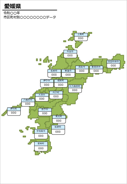 愛媛県の市町村別の数値入力データマップ(パワーポイント/エクセル)|地域データの視覚化に