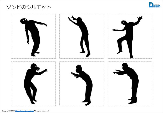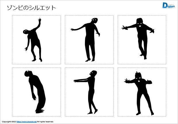 ゾンビのシルエット、徘徊している、襲い掛かろうとしている、各種ポーズ、白黒など12種類
