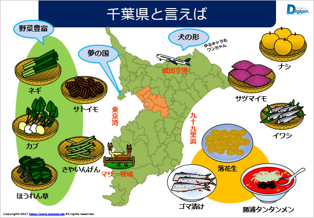 千葉県の地図、白地図、市区町村地図、データマップ、千葉県の名産特産のイラスト、千葉県に関するイラスト、千葉県の花、木、鳥のイラストのフリー素材、無料素材をまとめています。
