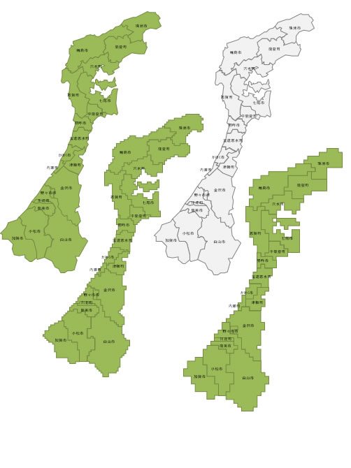 石川県のパワポ、エクセル、ワード、PNG形式画像別の地図素材です。
