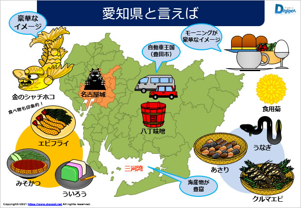 愛知県をイメージするイラスト(パワーポイント/PNG形式画像)