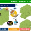 滋賀県の名産品、特産品、建造物、花鳥木などのイラスト集です。滋賀県を紹介する資料作りにも最適です。