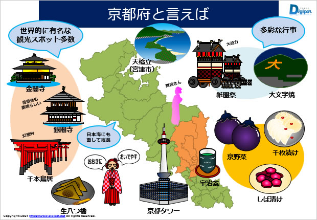 京都府の地図、白地図、市区町村地図、データマップ、京都府の名産特産のイラスト、京都府に関するイラスト、京都府の花、木、鳥のイラストのフリー素材、無料素材をまとめています。