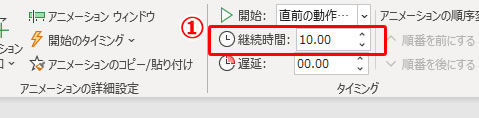 (1)継続時間を設定します。設定した秒数が、プログレスバーがアニメする時間となります。