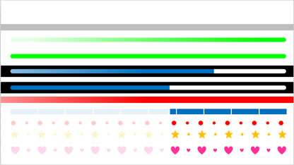 メーター風にしたり、半透明のバーを使ってハート型や星形風にしたりとグラフィカルなプログレスバーも簡単に作れます。