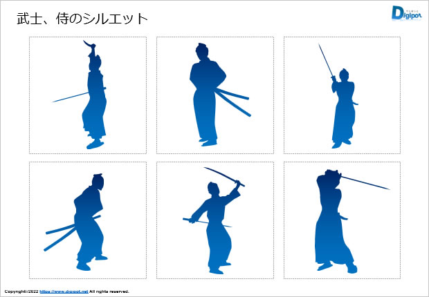 武士、侍のシルエット(パワーポイント/PNG画像)