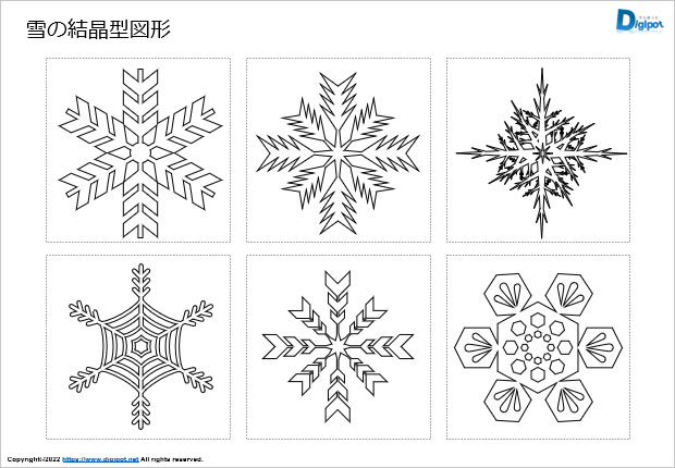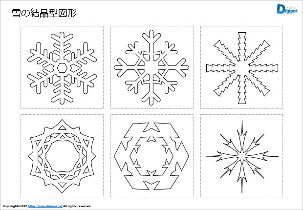 雪の結晶型のいろいろな図形集です。冬のイメージ、雪のイメージの各種素材にご活用ください。