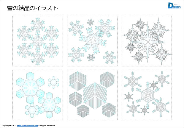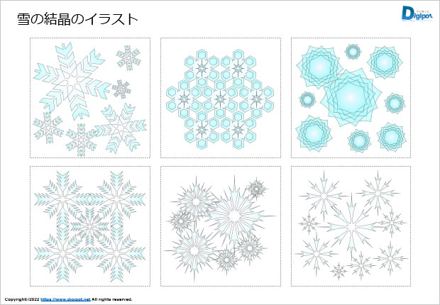 雪の結晶をイメージしたいろいろな形状です。冬のイメージや雪のイメージなどにご活用ください。