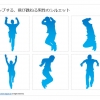 ジャンプする、飛び跳ねる女性のシルエット、飛び上がる女性、落下、着地、白黒、グラデーションなど12種類