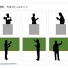 フリー、無料で使える講師、セミナーする人物のシルエット画像です。パワーポイントPPTX形式と、パワーポイントから書き出したPNG透明形式ファイル版を用意しています。