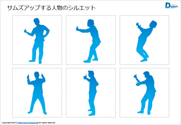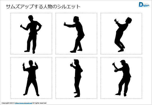 サムズアップする人物のシルエット、グッドサイン、OK、いいね、派手にサムズアップ、白黒、グラデーションなど12種類