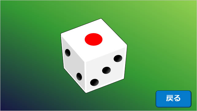 疑似の透明ボタンからひとつクリックして結果の1~6の数字をランダムで導くサイコロゲーム。