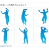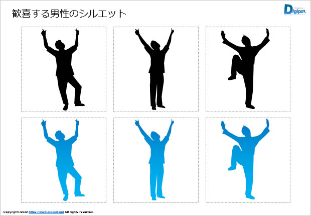 歓喜する男性のシルエット、踊る、小躍り、白黒、グラデーションなど6種類