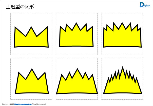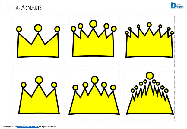 王冠型の図形、カンムリ、キングなど12種類