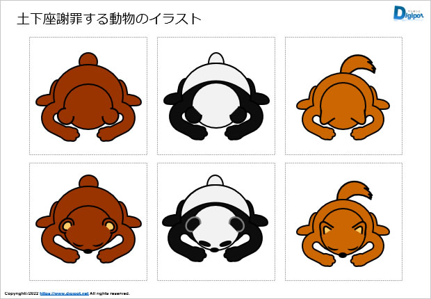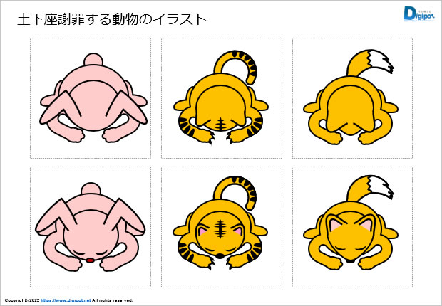 土下座謝罪する動物のイラスト/ウサギ、トラ、キツネ 等(パワーポイント/PNG画像)