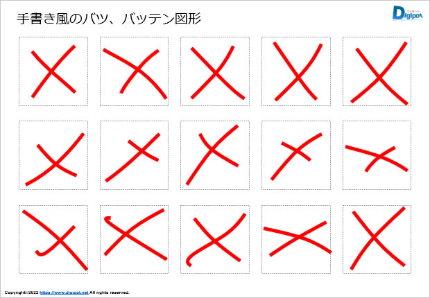 手書き風のバツ、バッテン、チェック図形、赤バツなど各種30種類