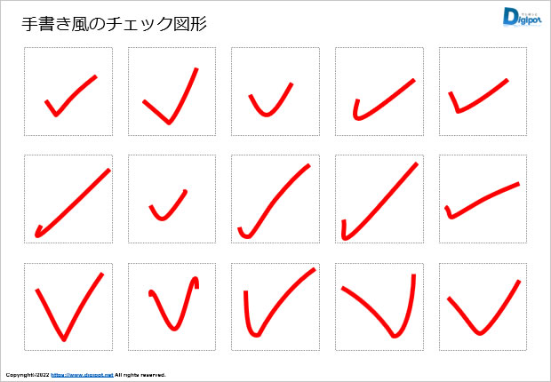 手書き風のバツ、バッテン、チェック図形(パワーポイント)をダウンロードする