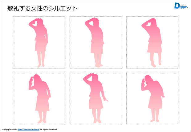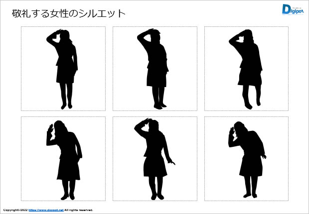 敬礼する女性のシルエット(パワーポイント)をダウンロードする
