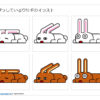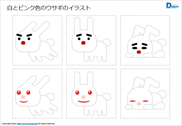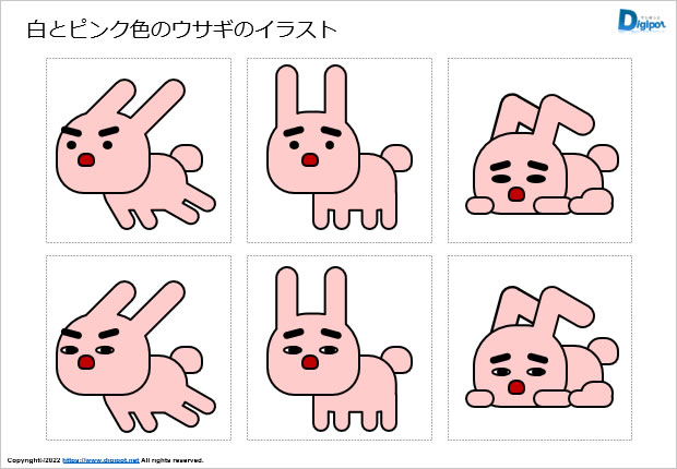 白とピンク色のウサギのイラスト、走るウサギ、寝るウサギ、フチ有フチ無しなど12種類