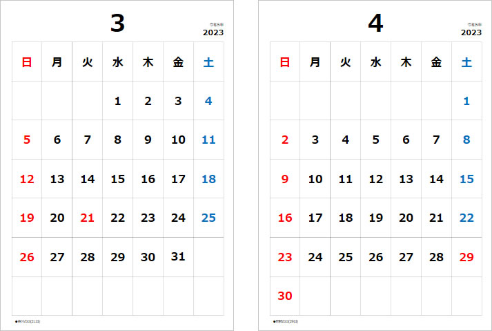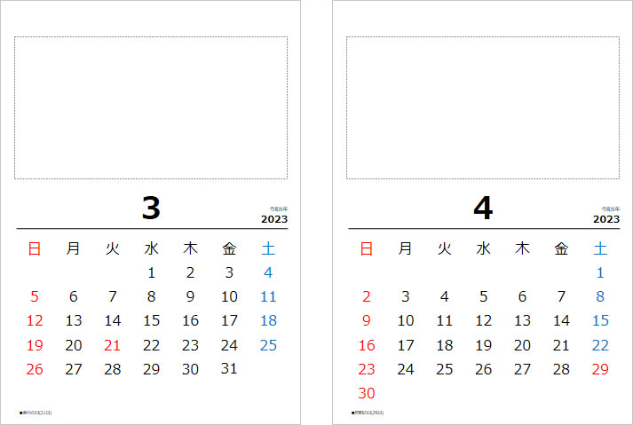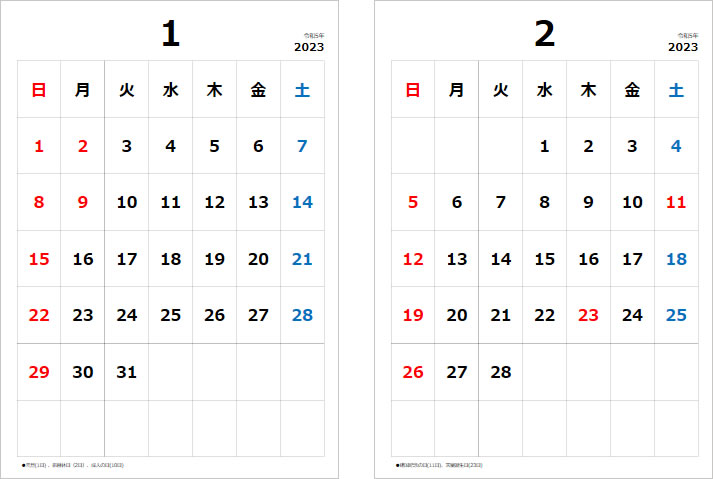 フリー、無料で使える一か月カレンダーテンプレート/2023年用(令和5年)です。パワーポイントPPTX形式と、エクセル版を用意しています。