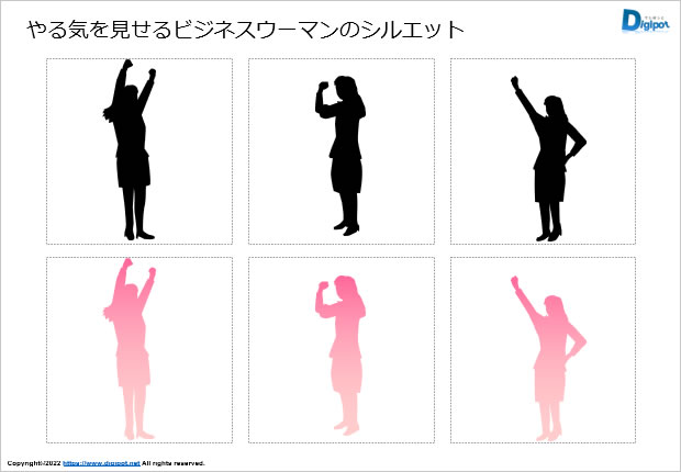 やる気を見せるビジネスウーマンのシルエット(パワーポイント/PNG画像/エクセル/ワード)