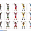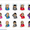 やる気を見せるビジネスウーマンのシルエット、両手を突き上げる、片手で力こぶを作ろうとするポーズ、白黒、グラデーションなど6種類