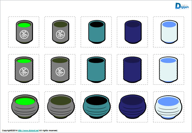シンプルな湯のみ、お茶入り、文字入り、各種形状、枠有り枠無しなど30パターン