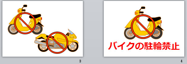 バイクの駐輪禁止の貼り紙(パワーポイント)