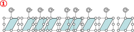 (1)オブジェクトを選択して、(2)平行に任意の数だけコピーします。