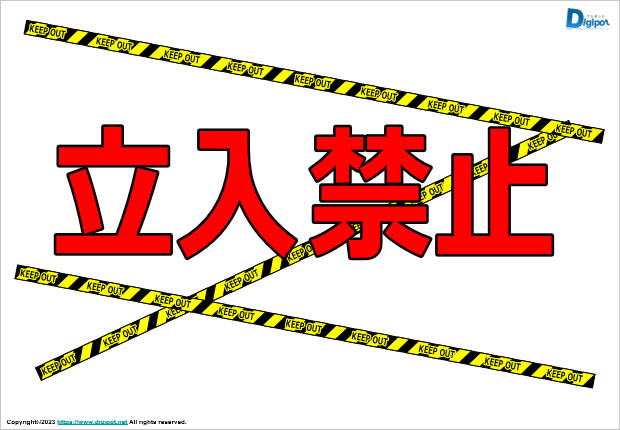 - 「立入禁止」など警戒、警告、注意、危険に関する貼り紙の素材に