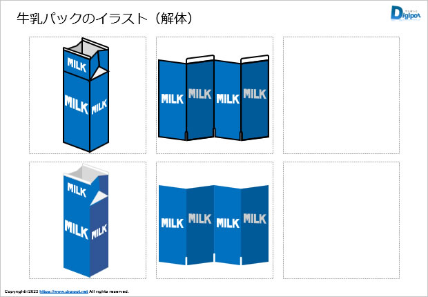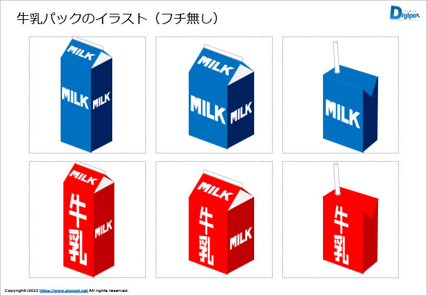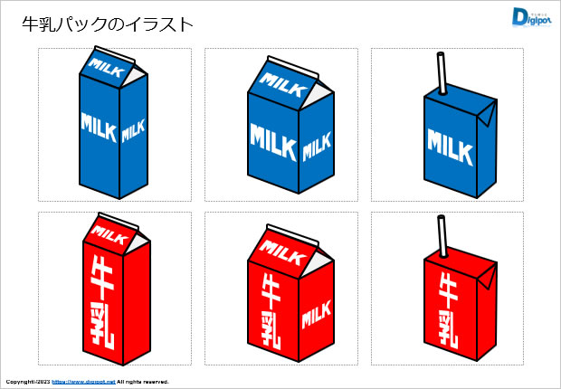 牛乳パックのイラスト(パワーポイント/PNG画像/エクセル/ワード)