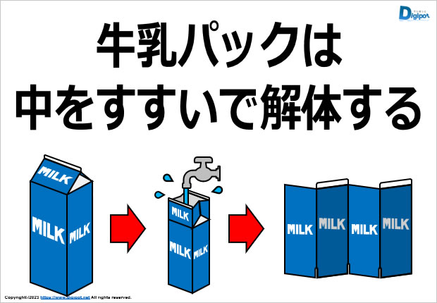 - 「1日1杯飲みましょう」「牛乳パックは洗って捨てる」牛乳に関する貼り紙の素材に