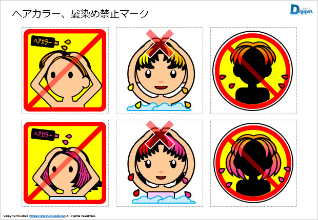 ヘアカラー、髪染め禁止マーク、イラスト(パワーポイント)をダウンロードする