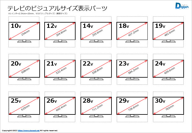 テレビのビジュアルサイズ表示パーツ(パワーポイント)をダウンロードする