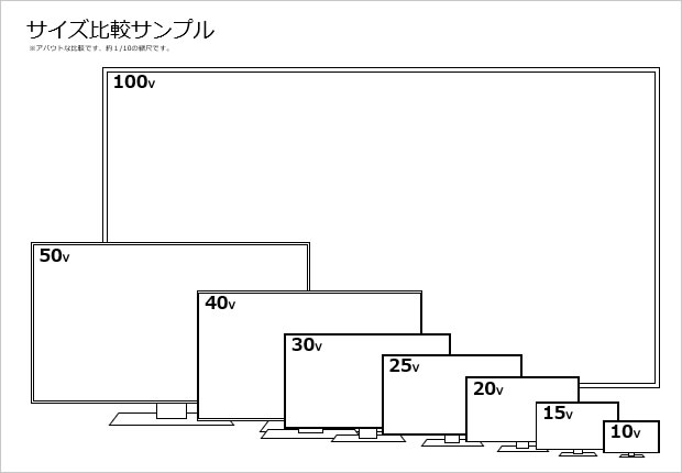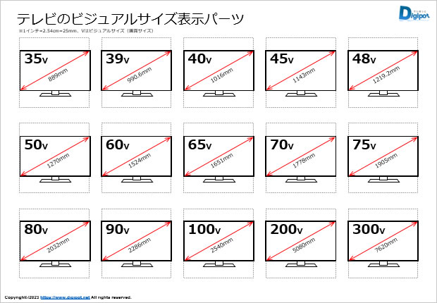 - テレビやモニターのサイズイメージに、ビジュアルサイズの表記に