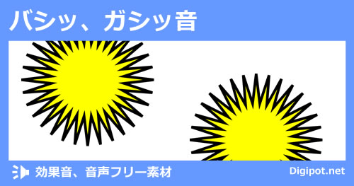 フリー、無料で使えるバシッ、ガシッ音の音声素材です。MP3ファイル形式データ6種類です。