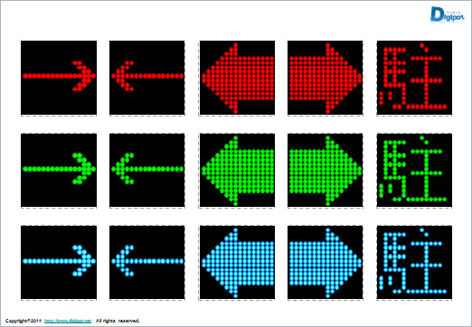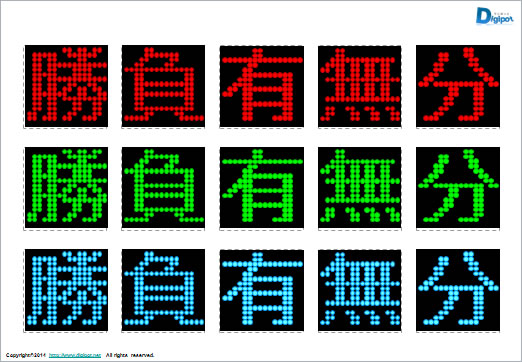 勝、負、有、無、分、矢印、の赤緑青の背景黒と白など60種類