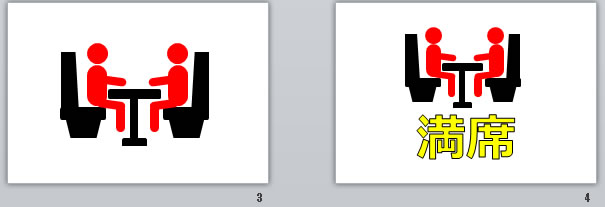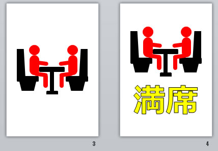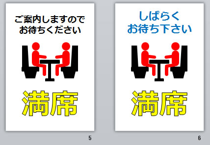 「満席」の文字のみ、「満席」とアイコン表示などA4縦/横