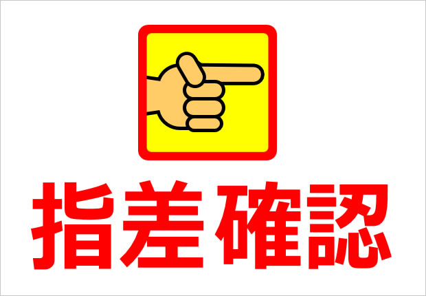 - 「指差確認」「指を差して確認してください」「指差し確認忘れずに」などの貼り紙の素材に
