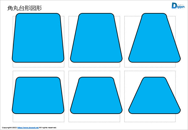 フリー、無料で使える角丸台形図形画像です。パワーポイントPPTX形式、エクセルXLSX形式、ワードDOCX形式ファイルを用意しています。