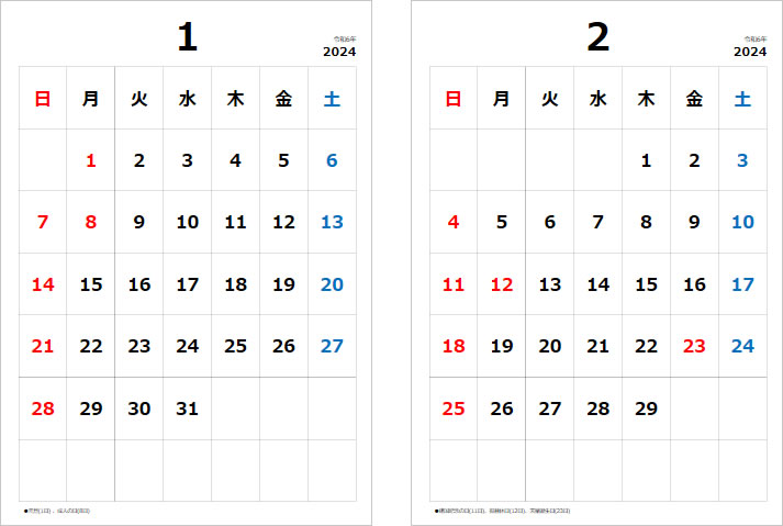 ※休日の変更などカレンダーに変更や誤りがある場合はお手数ですが修正してください。