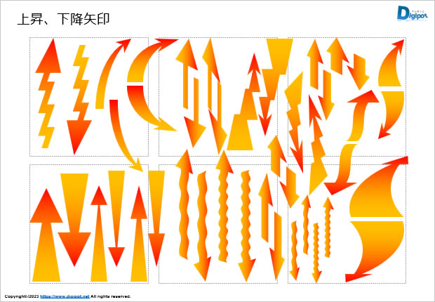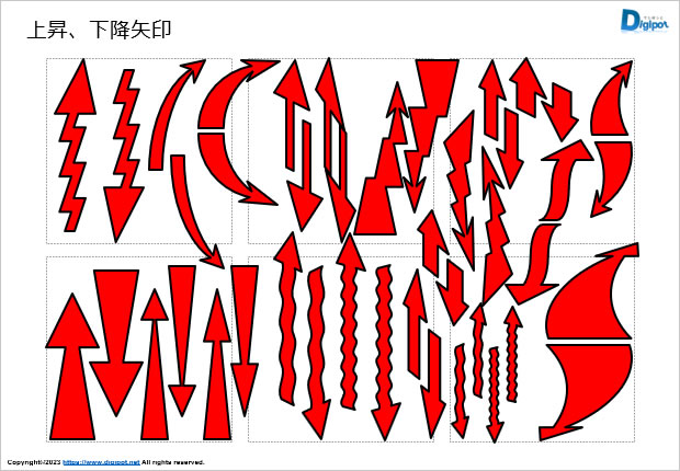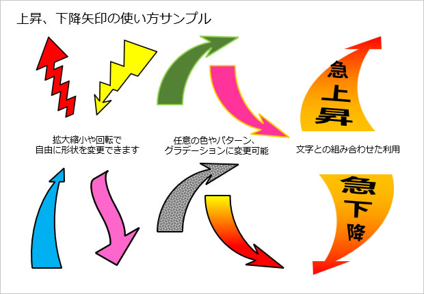 上昇、下降矢印、上向き矢印、下向き矢印、各種形状