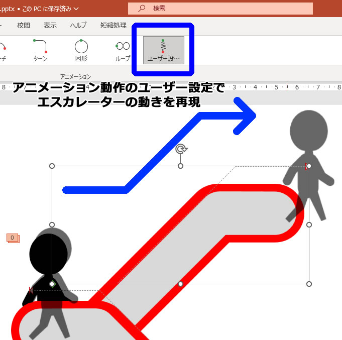 パワーポイントのアニメーション効果を利用したエスカレーターのアニメ動作サンプルです。