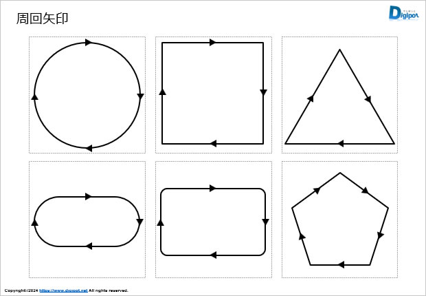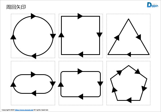 周回矢印、右回りの矢印、細い、太い、三角、丸、四角など12種類