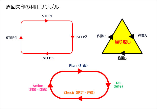 フリー、無料で使える周回矢印画像です。パワーポイントPPTX形式、エクセルXLSX形式、ワードDOCX形式ファイルを用意しています。