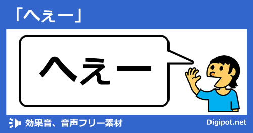 フリー、無料で使える「へぇー」の発声音の音声素材です。MP3ファイル形式データ15種類です。