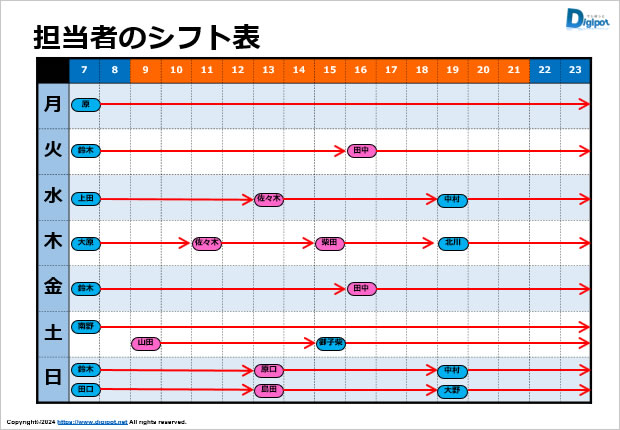 シフト表テンプレート/曜日、時間別(パワーポイント/エクセル)
