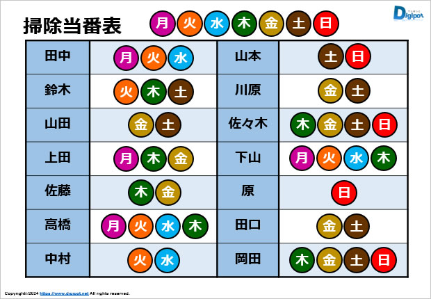 - 病院やクリニックで平日・週末の受付担当をわかりやすく共有したいとき
